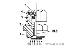 1密封錐面;2彈簧;3螺母;4密封蓋;5硬橡膠墊
