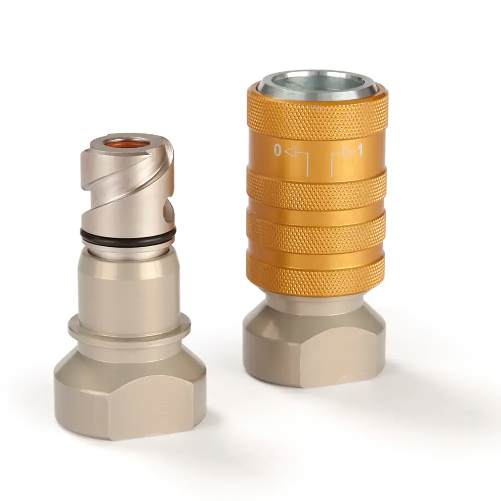 派克703系列快換接頭,使用共軸功能,同時連通兩條獨立的管路