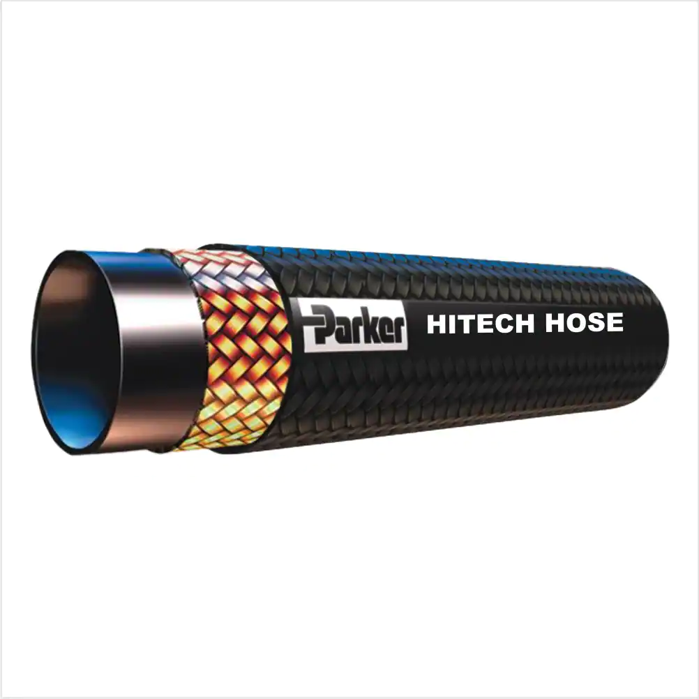 派克Hitech軟管,以符合行業要求,其結構一層鋼絲結構以及黑色的纖維編織外層。